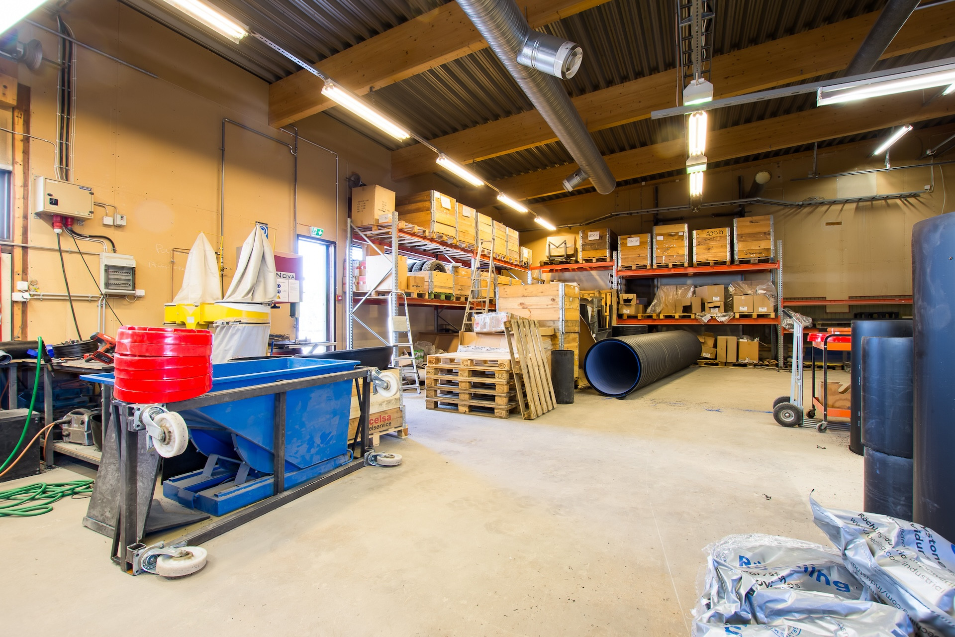 Lämpimän varastotilan vapaa korkeus n. 5 metriä. Varastotilassa yhteensä kolme nosto-ovea. Lattia teräsbetonilaattaa, hallin lattia paalutettu.