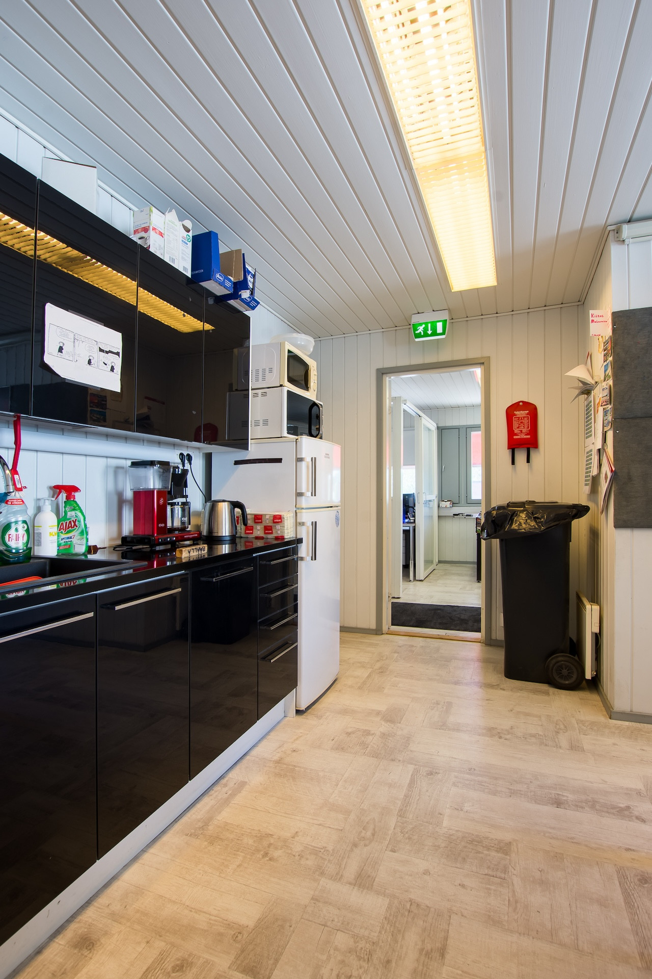 Lämmitysmuoto sähkö, lämmönjako tapahtuu ilmanvaihtokoneen kautta puhallin lämmityksellä. Toimisto-taukotilassa on sähköpatterit sekä ilmalämpöpumppu.