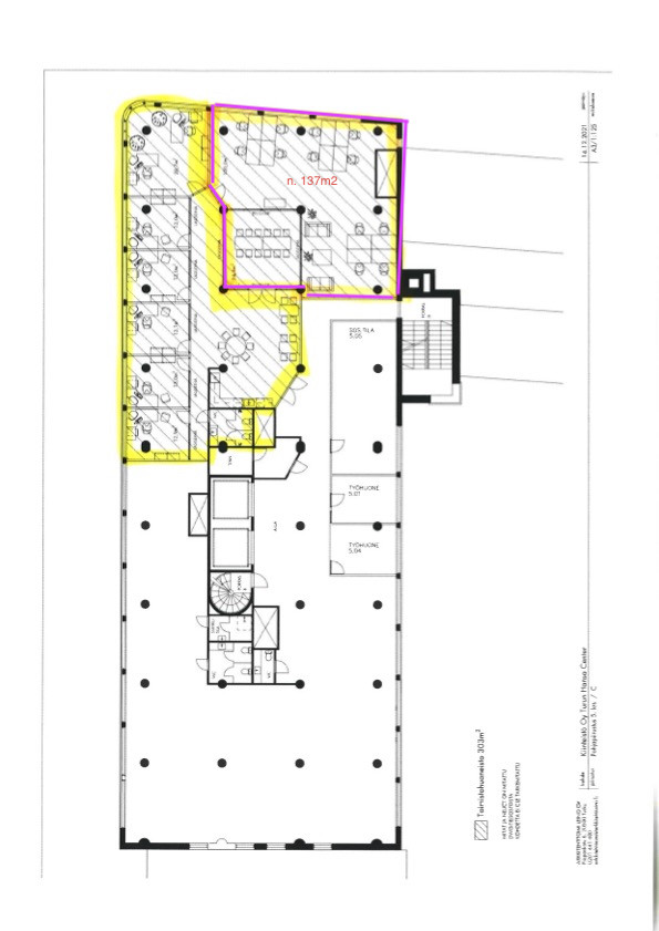 Vuokrattavana 5.krs n.137m2 toimistohuoneisto, osoitteessa Puutarhakatu 45, Turku. Siistit tilakokonaisuus jossa avotilan lisäksi 2-3 työhuonetta.. Vuokrapyyntö 1 370 euroa/kk + kulut + alv. Vapautuu 1.12.2025 Lisää toimitiloja www.rhg.fi Ei lain edellyttämää e-todistusta
