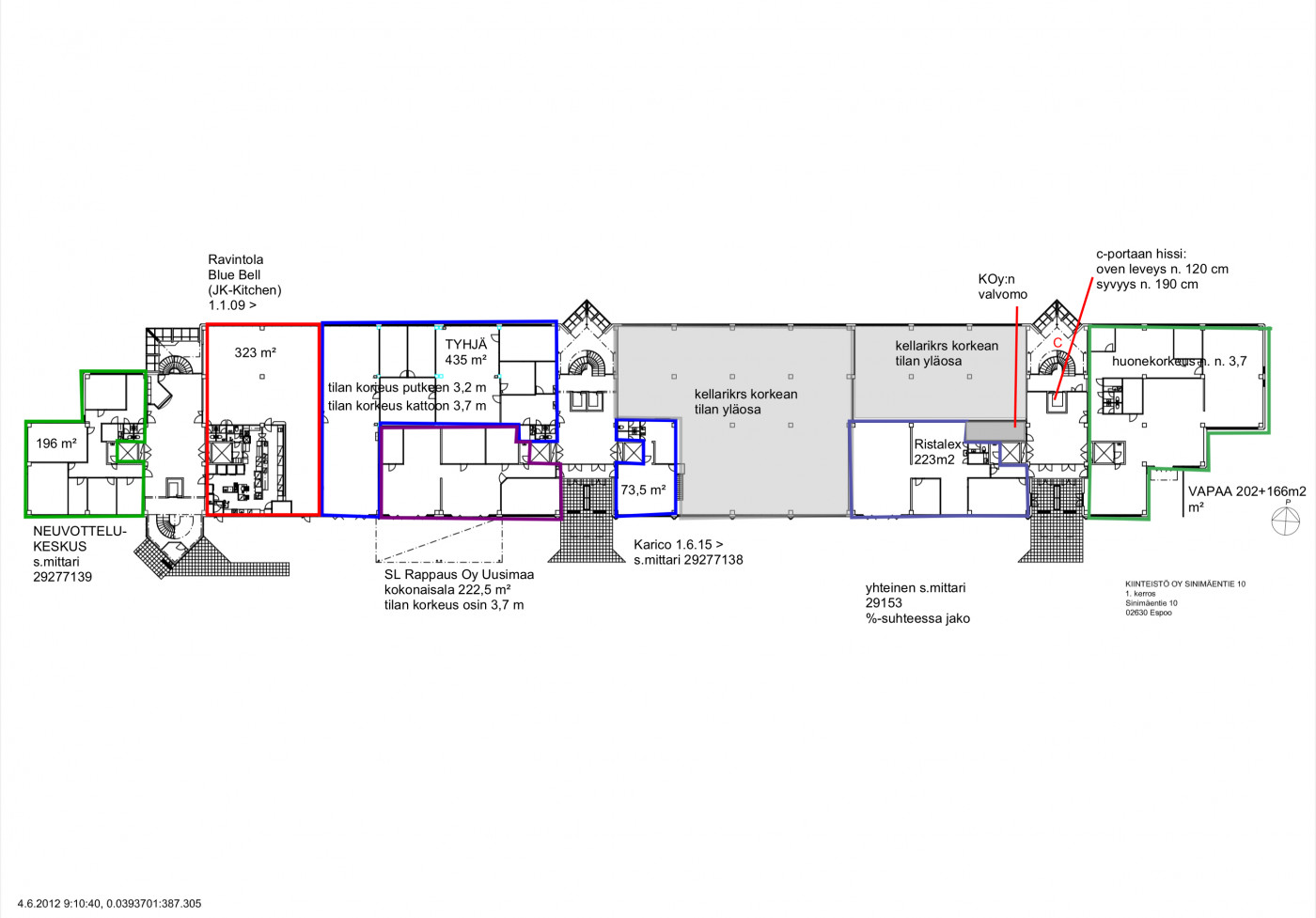 Espoon Sinimäentie 10 tarjoaa erinomaiset puitteet varasto- ja tuotantotoiminnalle. Vuokrattavana on 166 m2 ja 202 m2 tilat, jotka voidaan tarvittaessa yhdistää avaraksi 368 m2 (pohjakuvassa oikeassa päädyssä) kokonaisuudeksi. Noin neljän metrin huonekorkeus luo joustavuutta erilaisiin käyttötarkoituksiin, ja lastausoven ansiosta tavaraliikenne sujuu vaivattomasti.