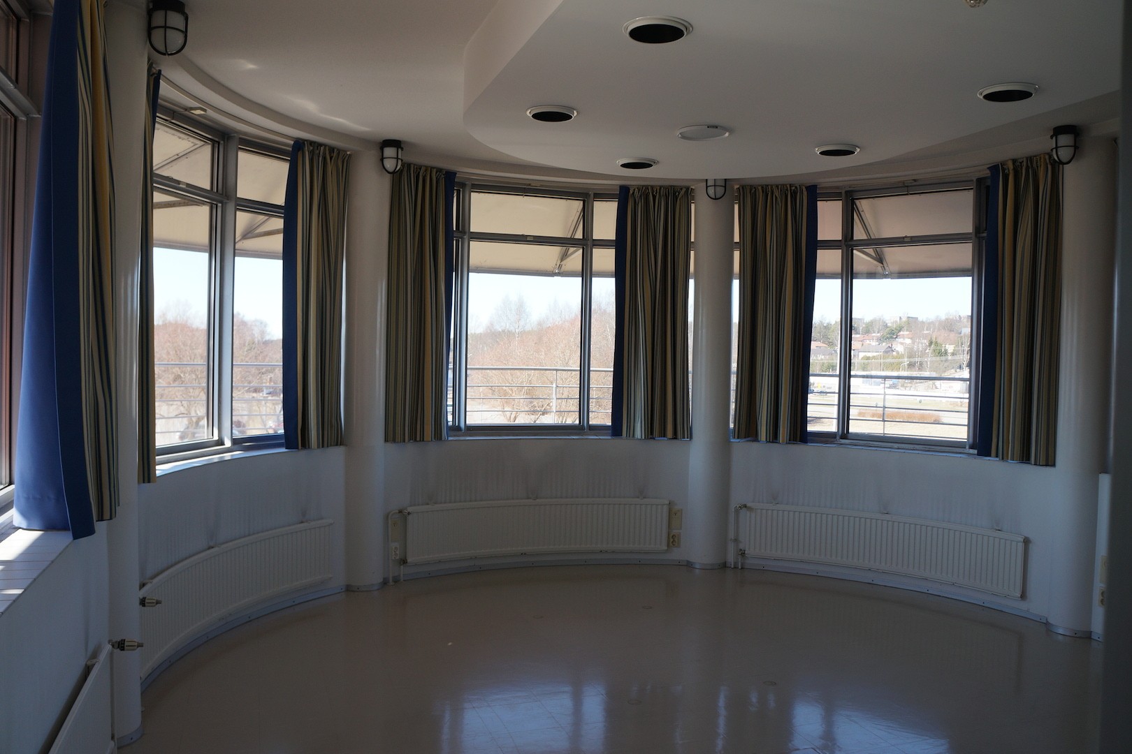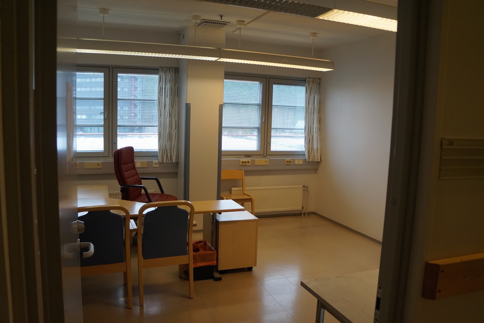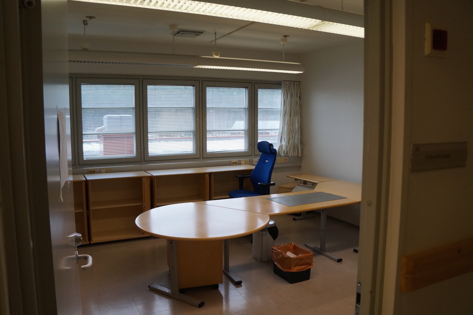 Tila on aiemmin ollut suunnittelutoimiston käytössä, ja se on pääosin jaettu erikokoisiin huoneisiin.