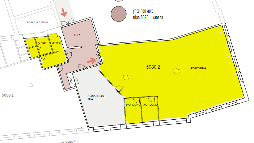 Parkkipaikkoja löytyy sekä kiinteistön pihalta että parkkihallista. Työmatkapyörälijöitä ajatelleen on talon rakennettu puku- ja suihkutilat. Paikalle pääsee myös julkisilla, esim raitiovaunupysäkit sijaitsee ihan vieressä.