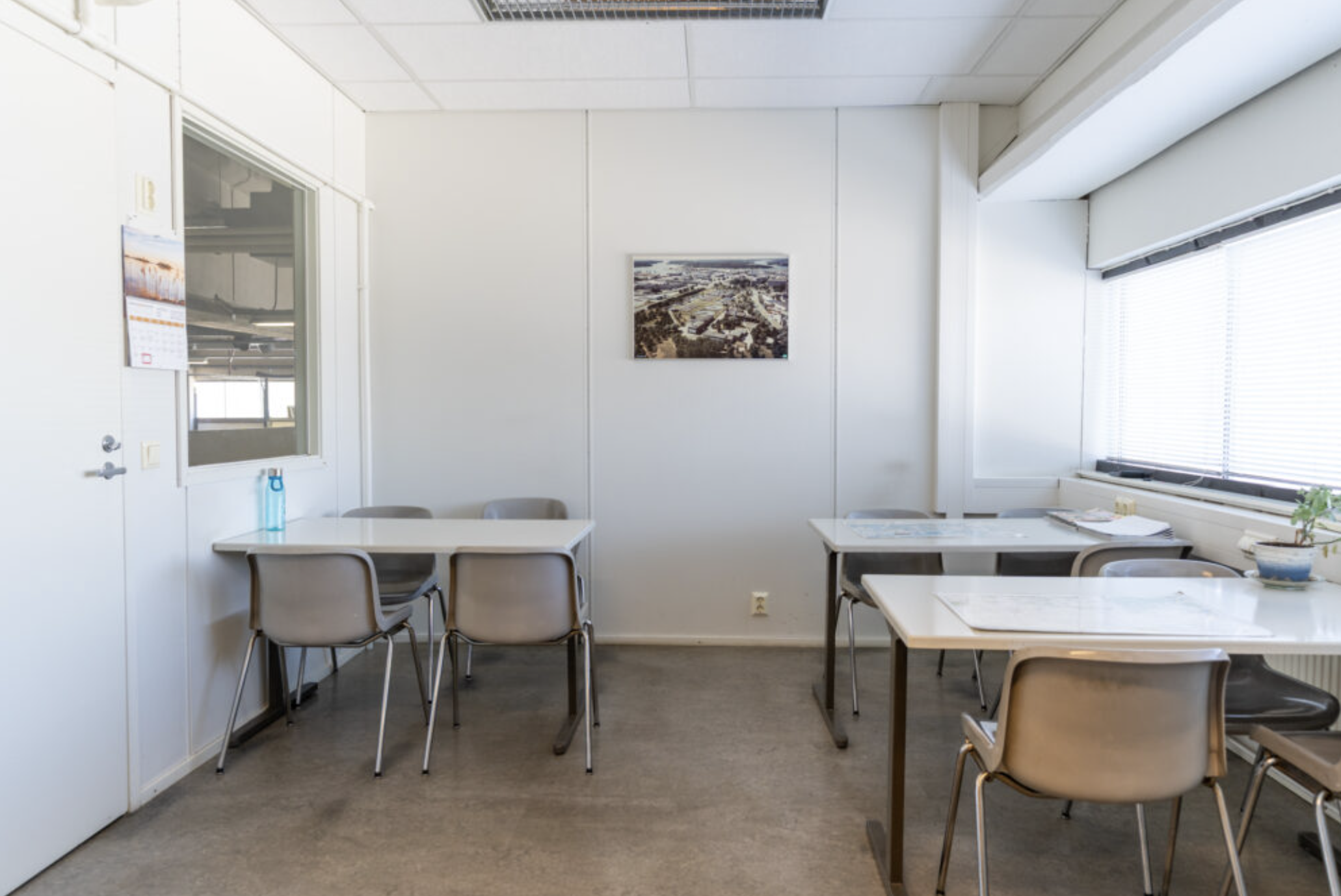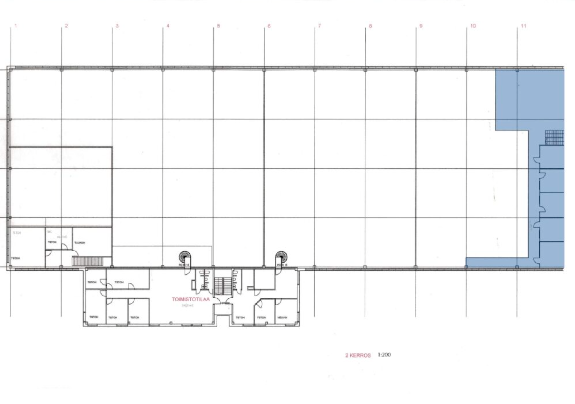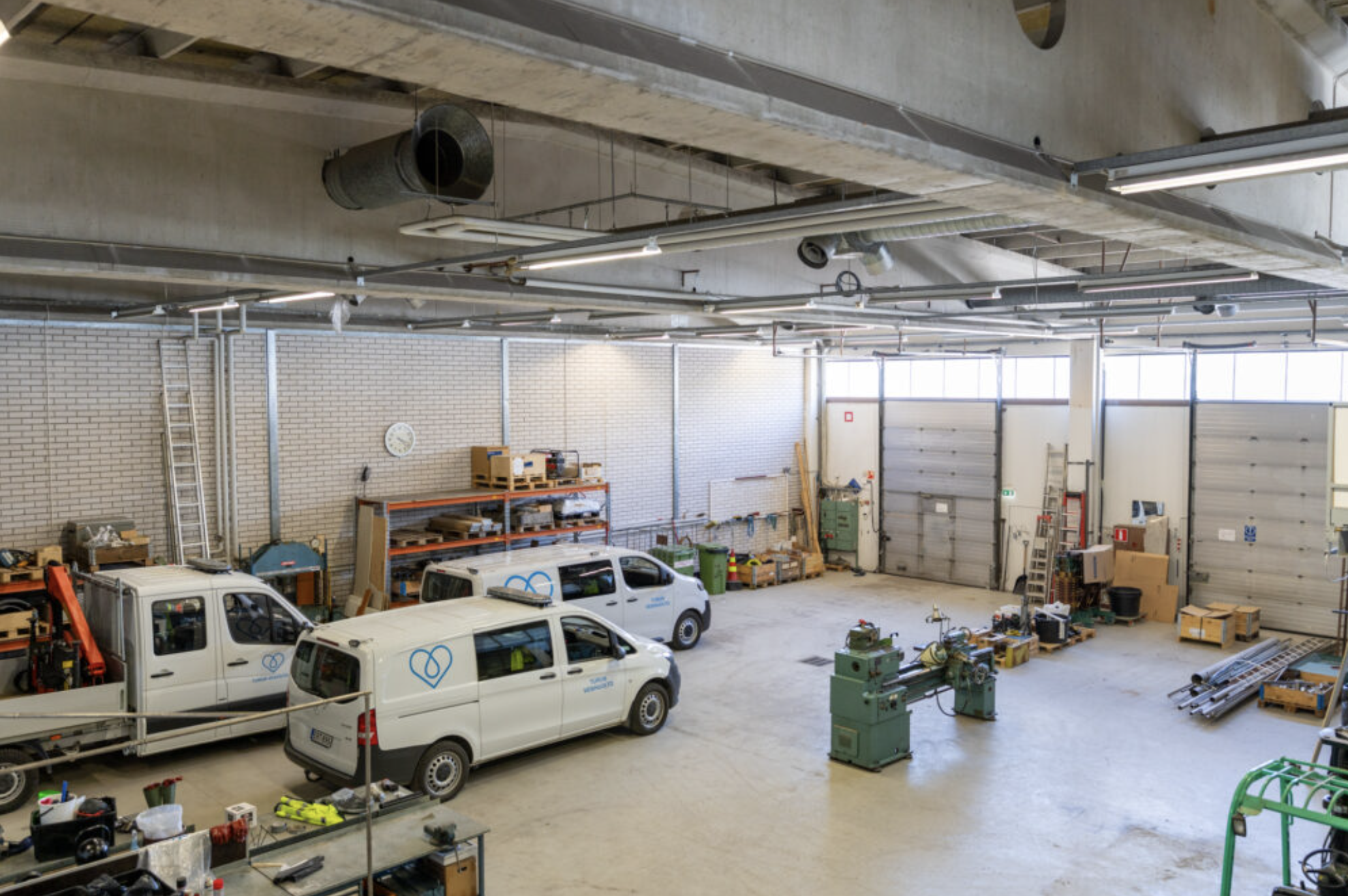 Tilakokonaisuuteen kuuluu korkea hallitila sekä yläkerran parvitilan toimistohuoneet, joissa on myös keittiö. Tilaan on oma sisäänkäynti ja kaksi nosto-ovea.