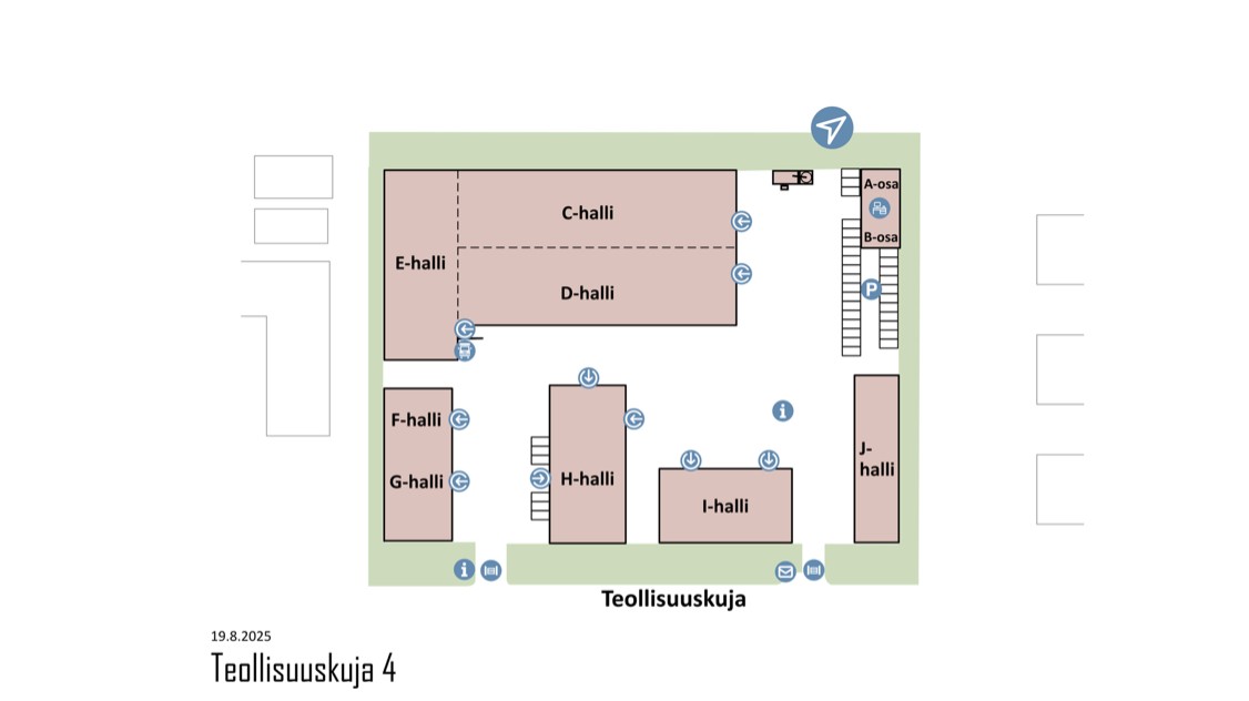 Tuusulan Hyrylässä (Teollisuuskuja 4) on vapautumassa 4255 m2 teollisuus- tai tuotantotilaa vuoden alusta 2026. Tehdasrakennuksen kolme hallia C, D ja E vuokrataan yhtenä kokonaisuutena. Hallitilojen yhteydessä hyvät tauko- ja pukuhuonetilat. Lisäksi erillinen toimistorakennus.