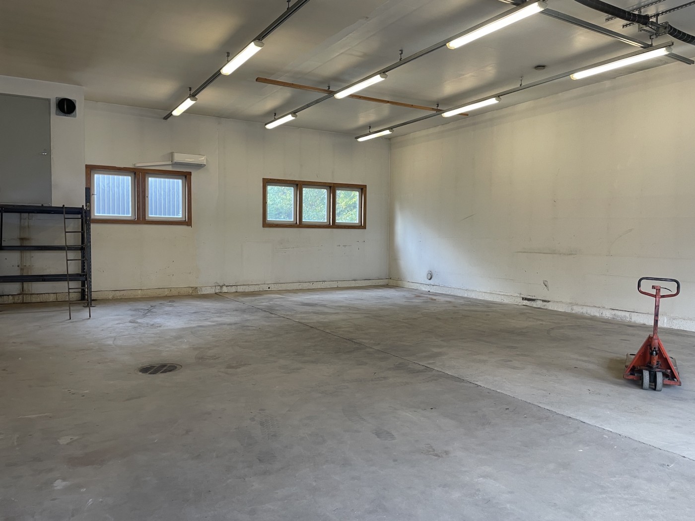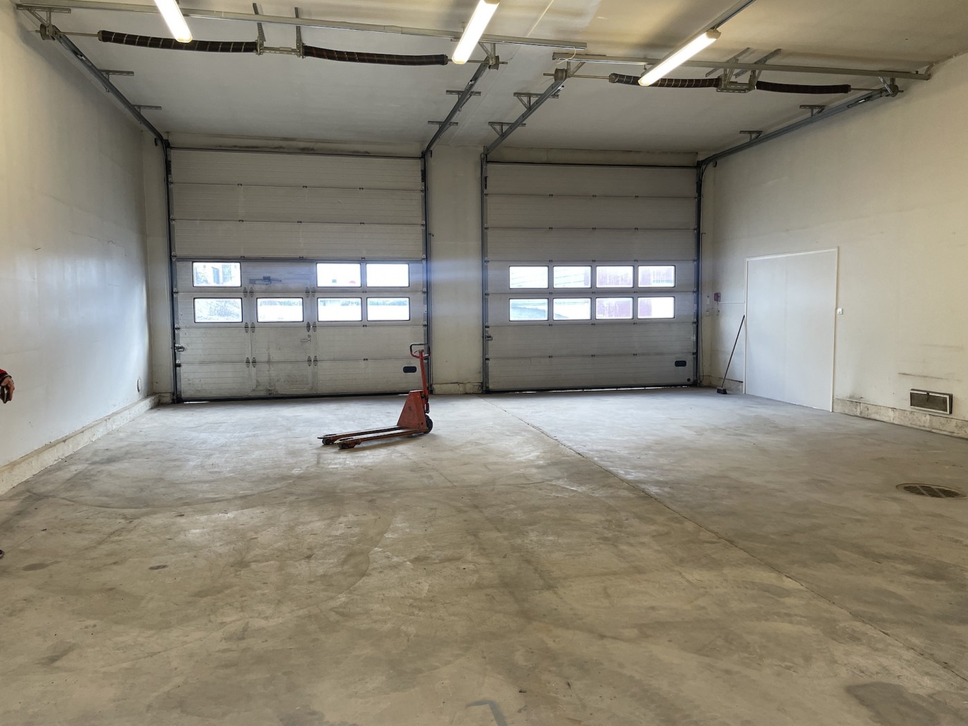Hallissa kahdet isot nosto-ovet. Hallissa lattiakaivo.