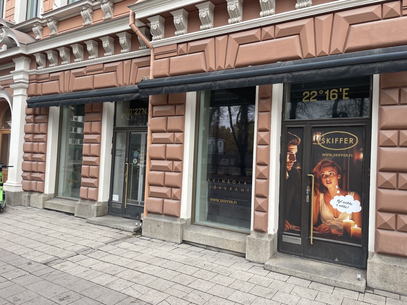 Vuokrattavana 126 m² katutason liiketila Turun tunnetussa Verdandin arvokiinteistössä, osoitteessa Aurakatu 1.