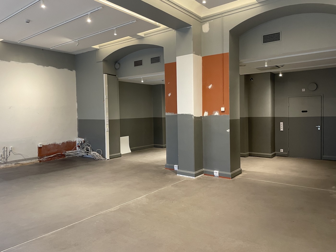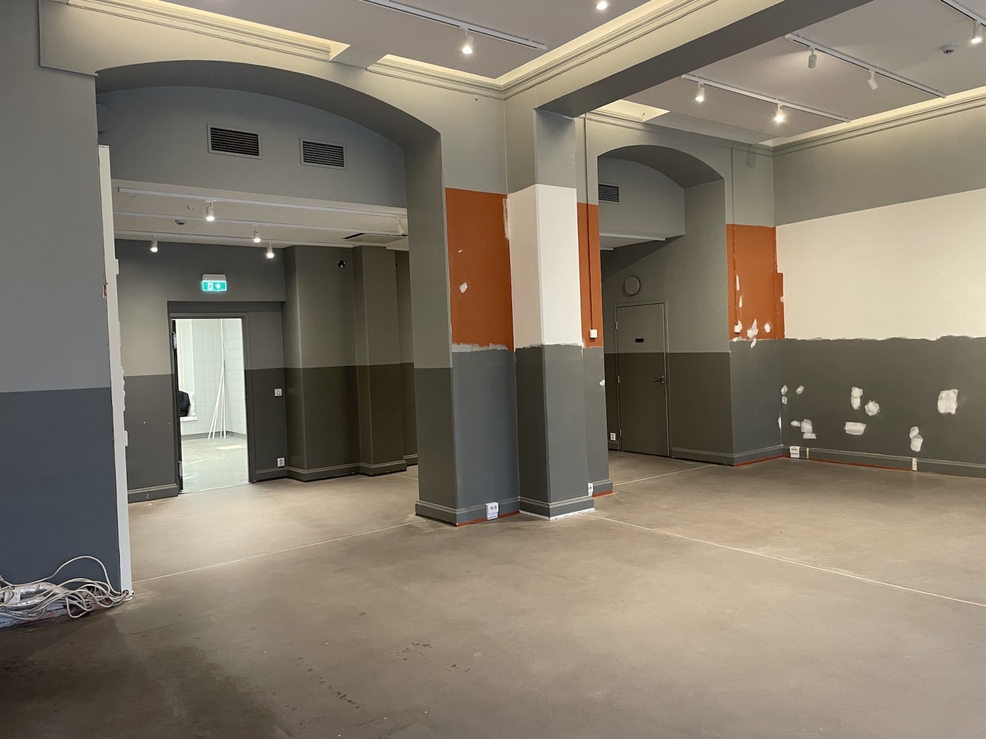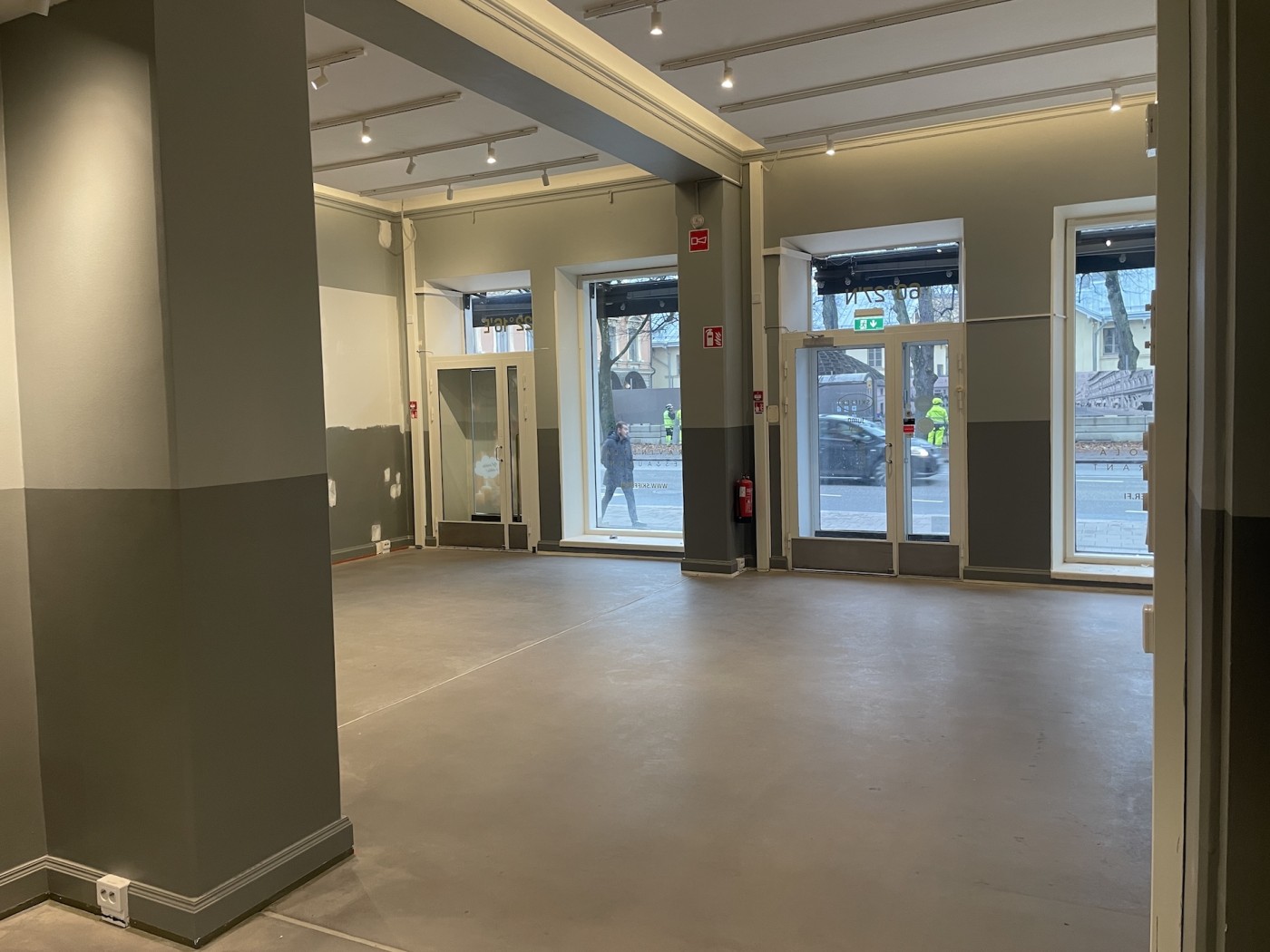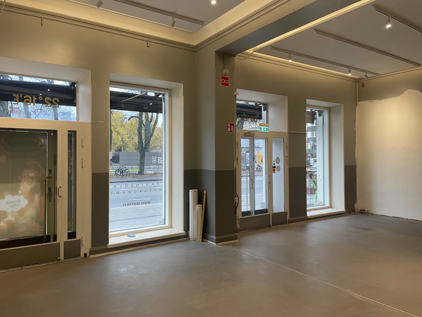 Tilaan johtaa kaksi sisäänkäyntiä, mikä mahdollistaa liikeidean, jossa samassa tilassa on kaksi eri toimintoa, esimerkiksi kahvila-vaatekauppa.