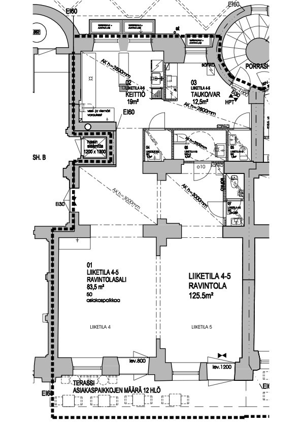 Tiloissa toimi viimeksi ravintola Skiffer, ja tila sopii sellaisenaan erinomaisesti kahvilaksi tai esimerkiksi viinibaariksi. Tilassa on asianmukaiset keittiötilat, mutta rasvakanpoistohormin puuttumisen takia ruokaravintolan pitäminen ei ole mahdollista ilman suuria muutoksia.