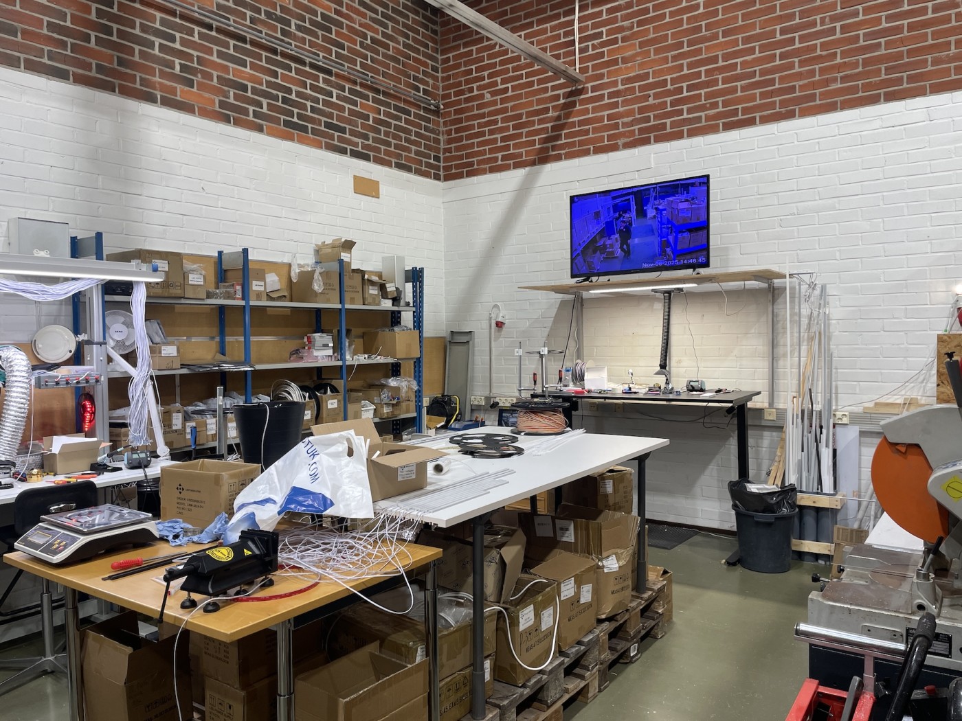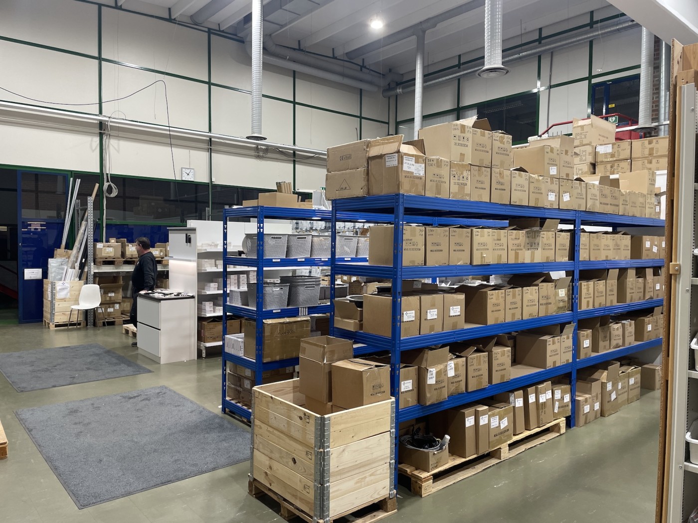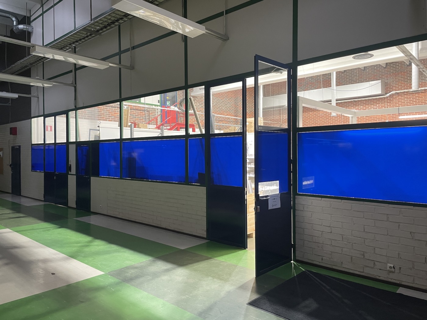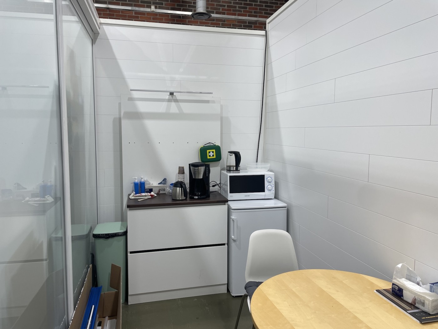 Tila soveltuu niin varastointiin kuin myös myymäläksi. Avotilan lisäksi siellä on pieni taukotila ja toimistohuone.