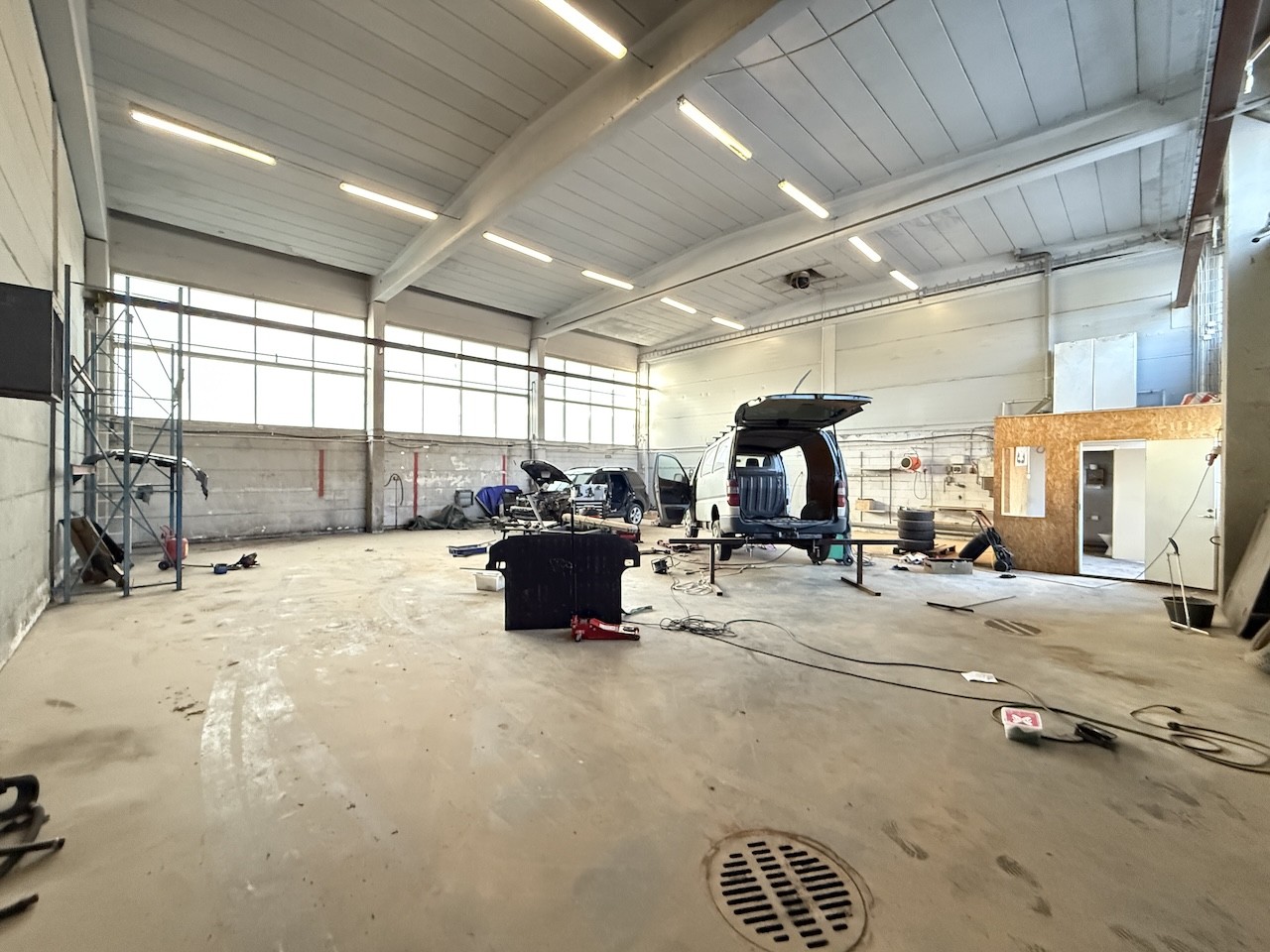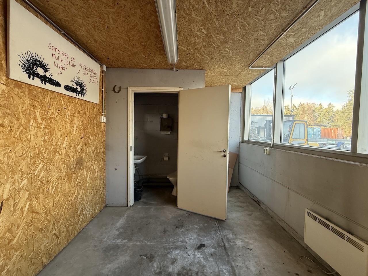 • Lattia: Kestävä betonilattia.