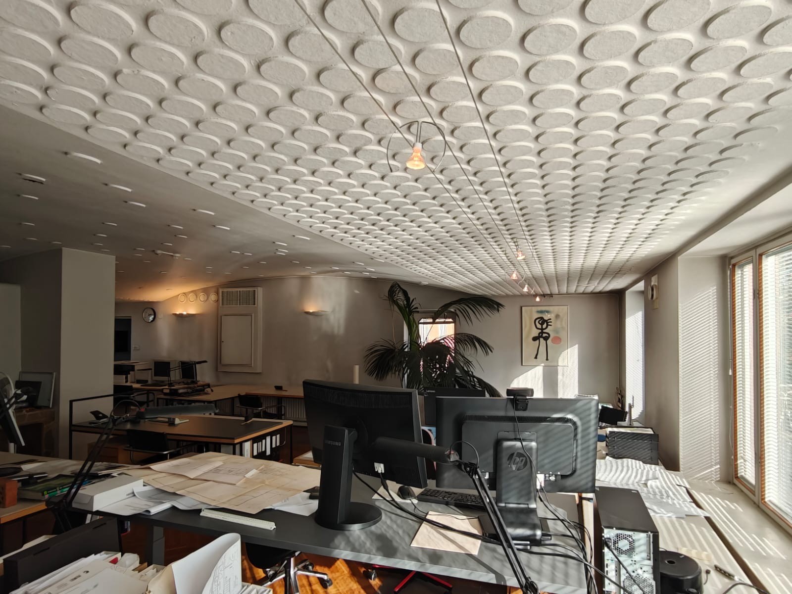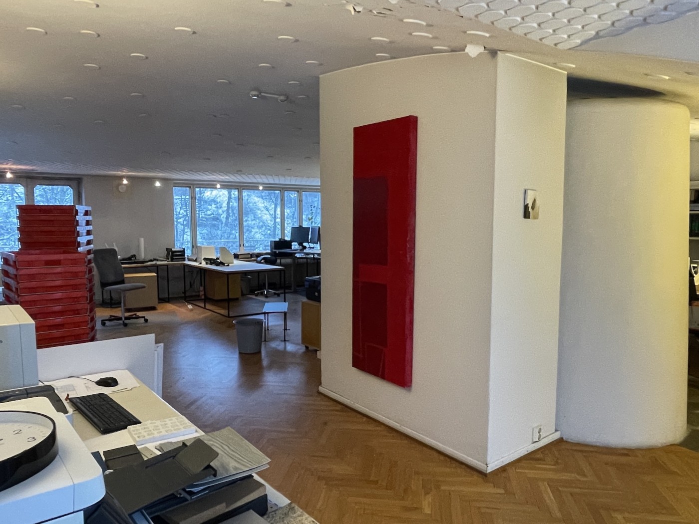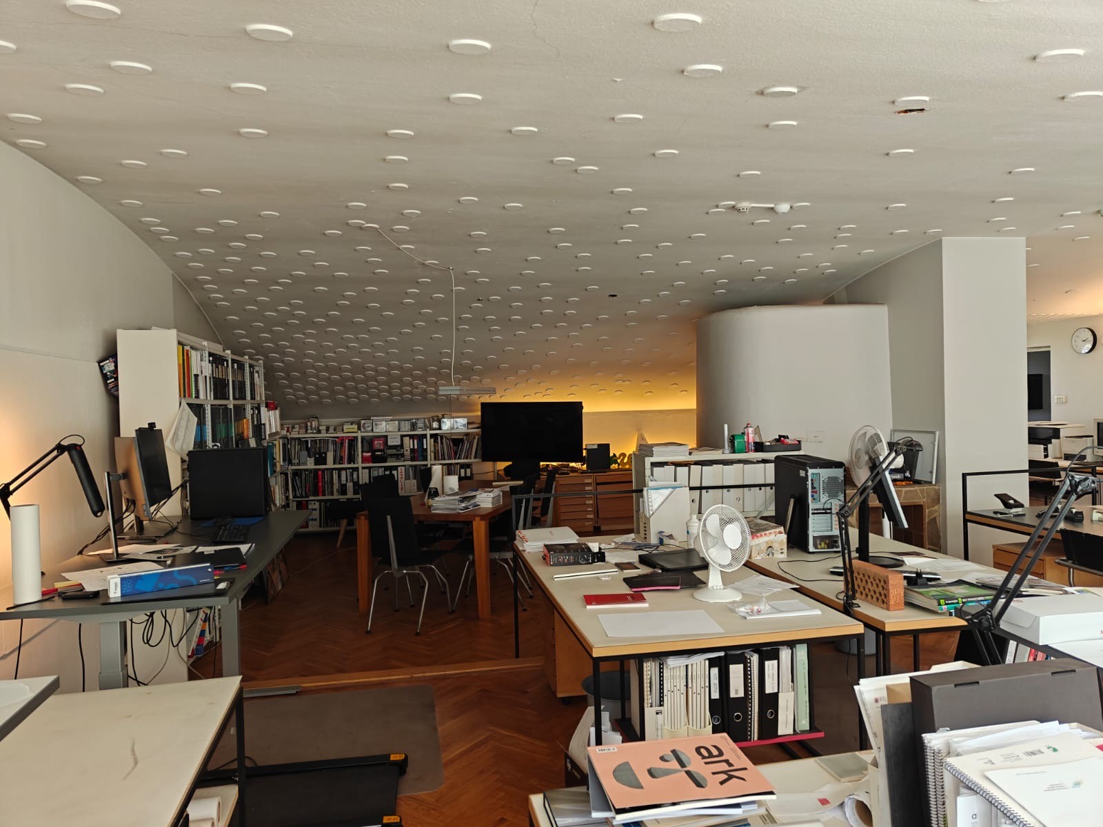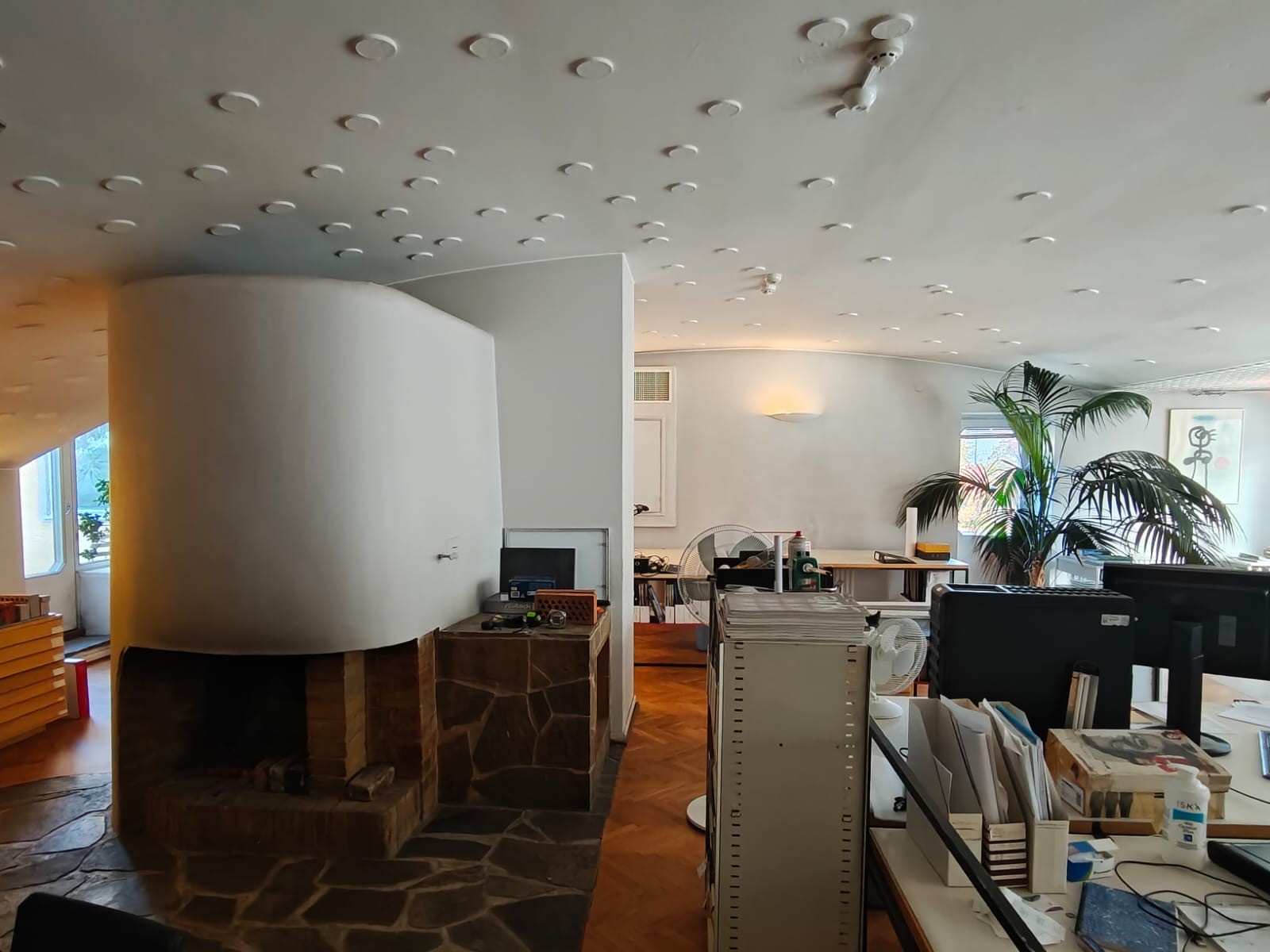 Tämä ylimmän kerroksen tila on historiallisesti ainutlaatuinen, sillä sen on suunnitellut itselleen ja käyttänyt ateljeenaan tunnettu arkkitehti Erik Bryggman, joka on suunnitellut myös Kårenin lisärakennuksen juhlasaleineen.