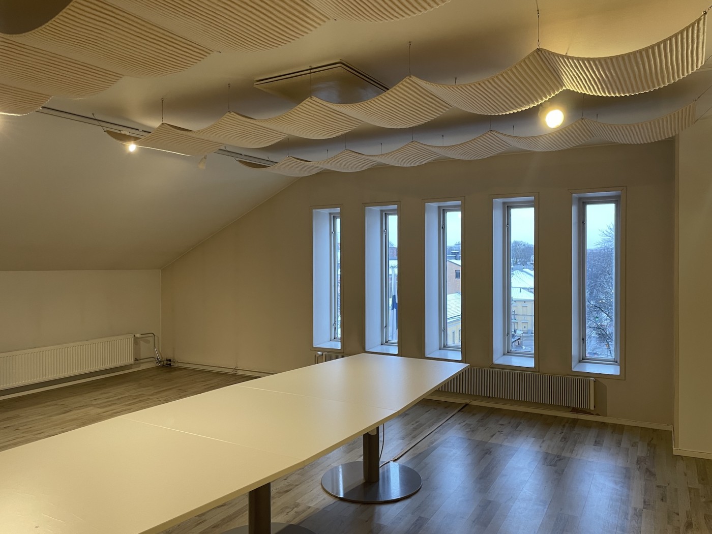 Huoneistossa on kolme erillistä toimistohuonetta, suuri kokoustila/ muunneltava avotila suuri kokoustila tai muunneltava avotila, josta avautuu upea näkymä Tuomiokirkolle päin.sekä varastotilaa ja kolme WC:tä.