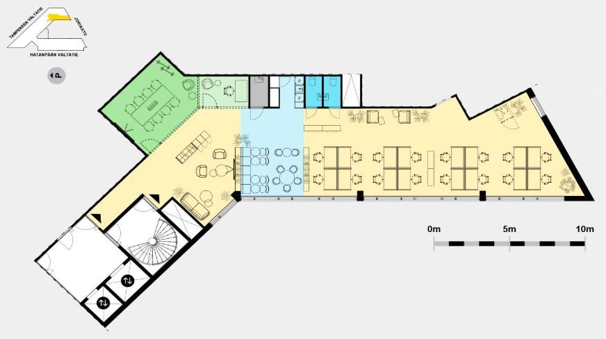Dynamo Business Parkissa vapaana neljännen kerroksen toimistotila. Tila on tällä hetkellä enimmäkseen avotilaa, mutta tila voidaan tarvittaessa muokata tulevan vuokralaisen toiveita kuunnellen.