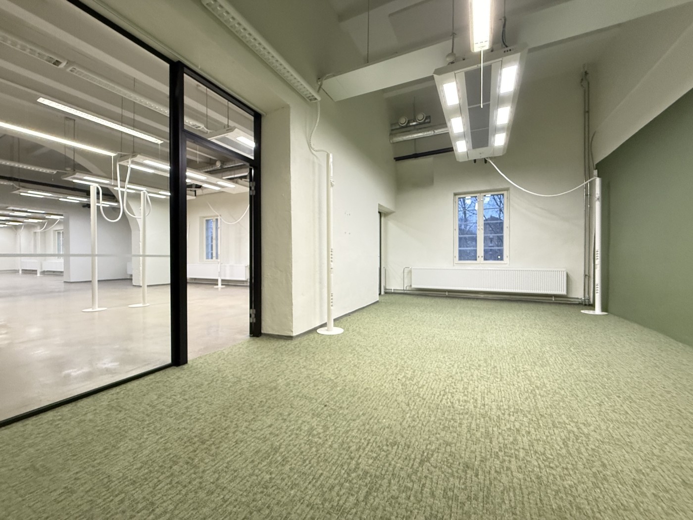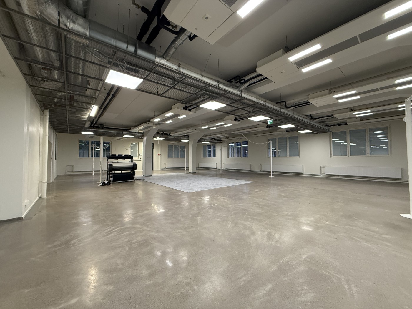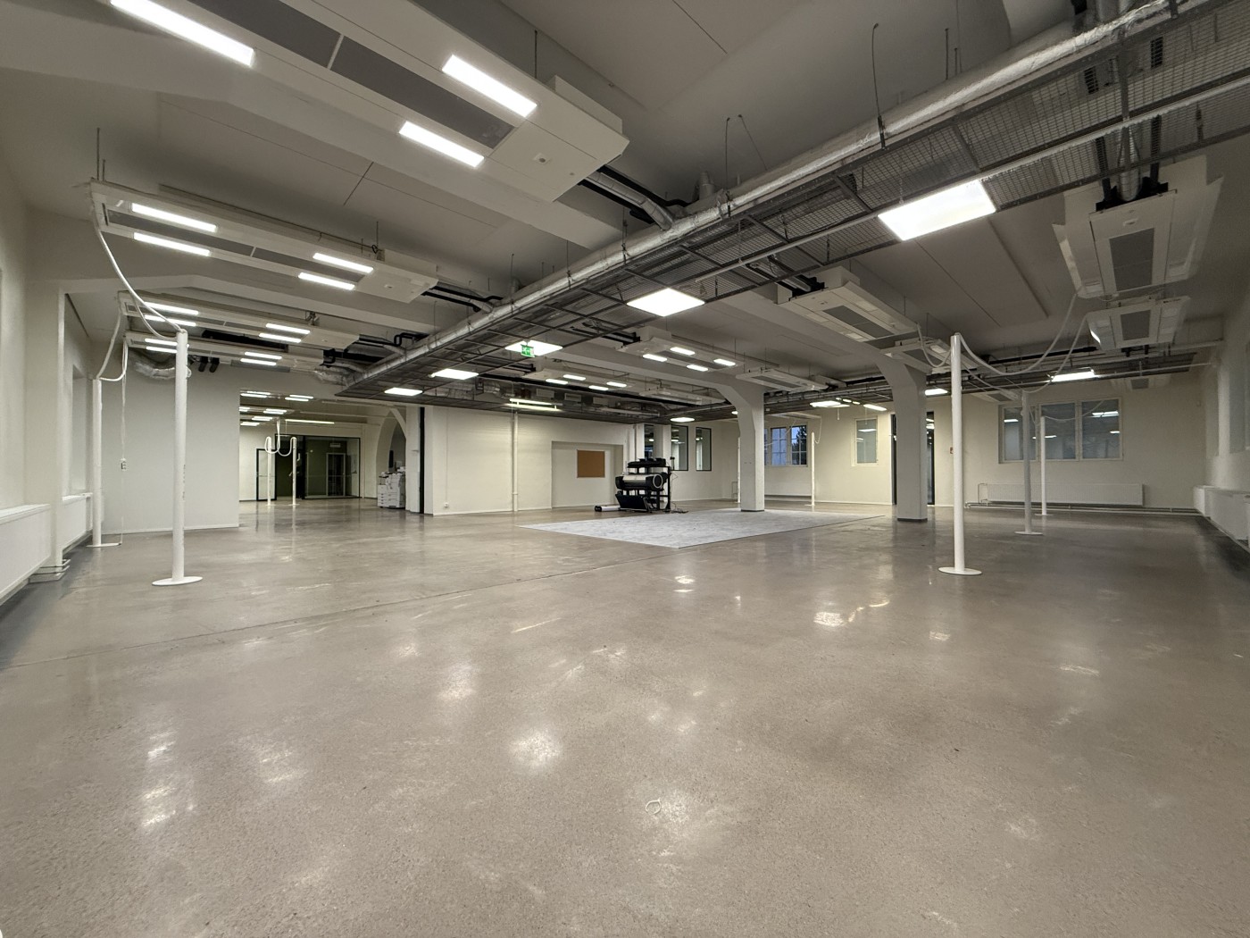 Tila jakaantuu pääosin avotiloihin, joiden lisäksi löytyy muutama työhuone ja neuvotteluhuone.