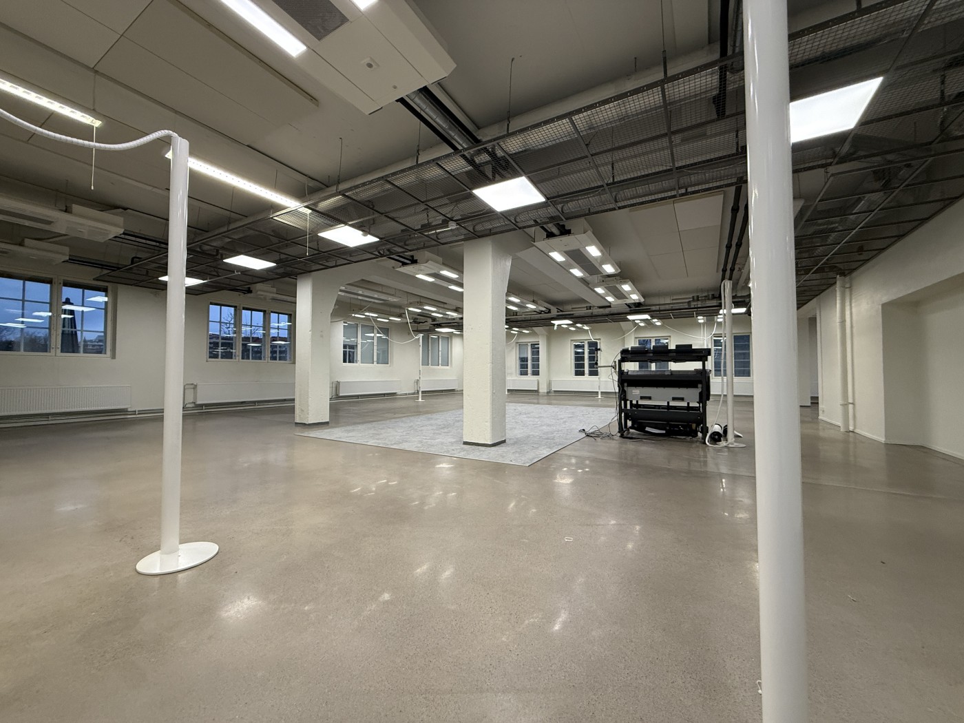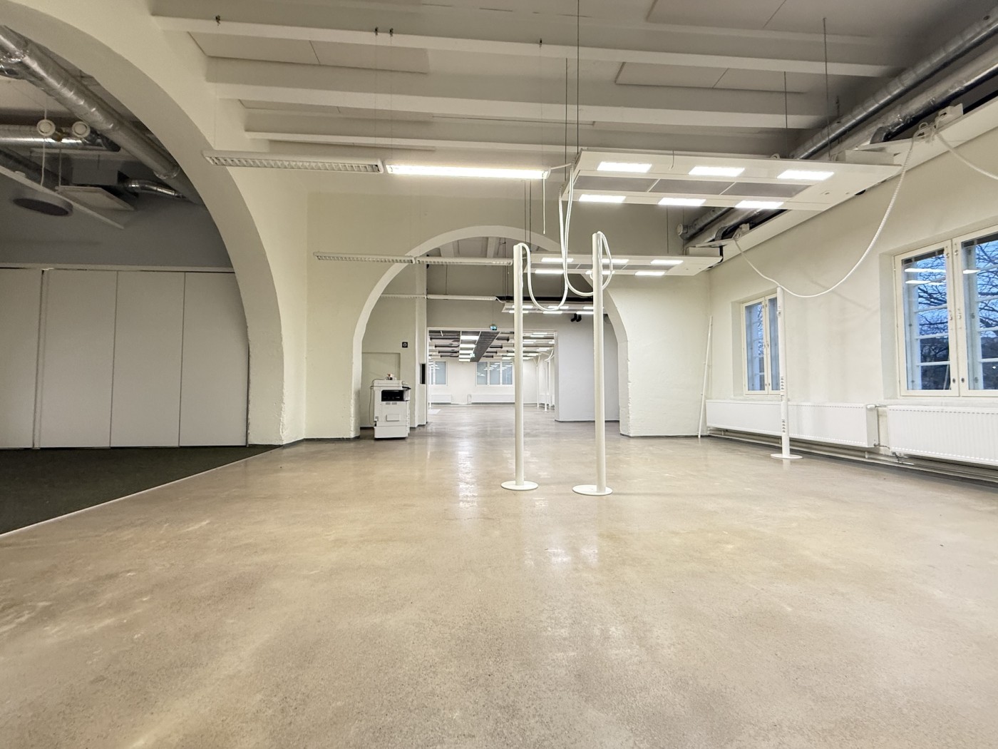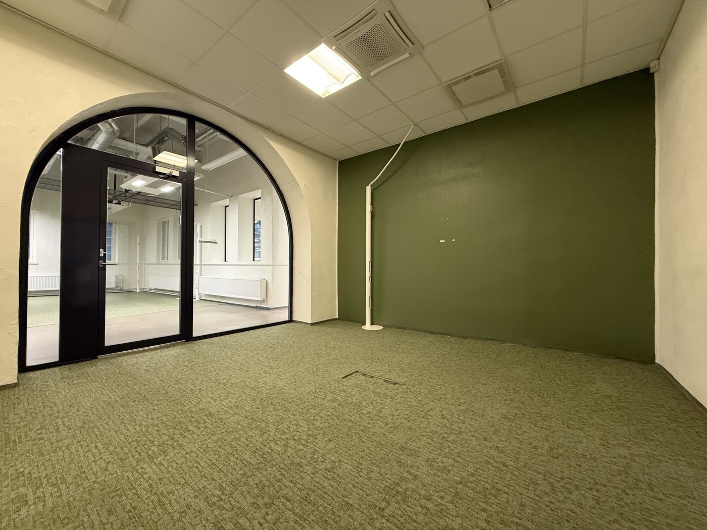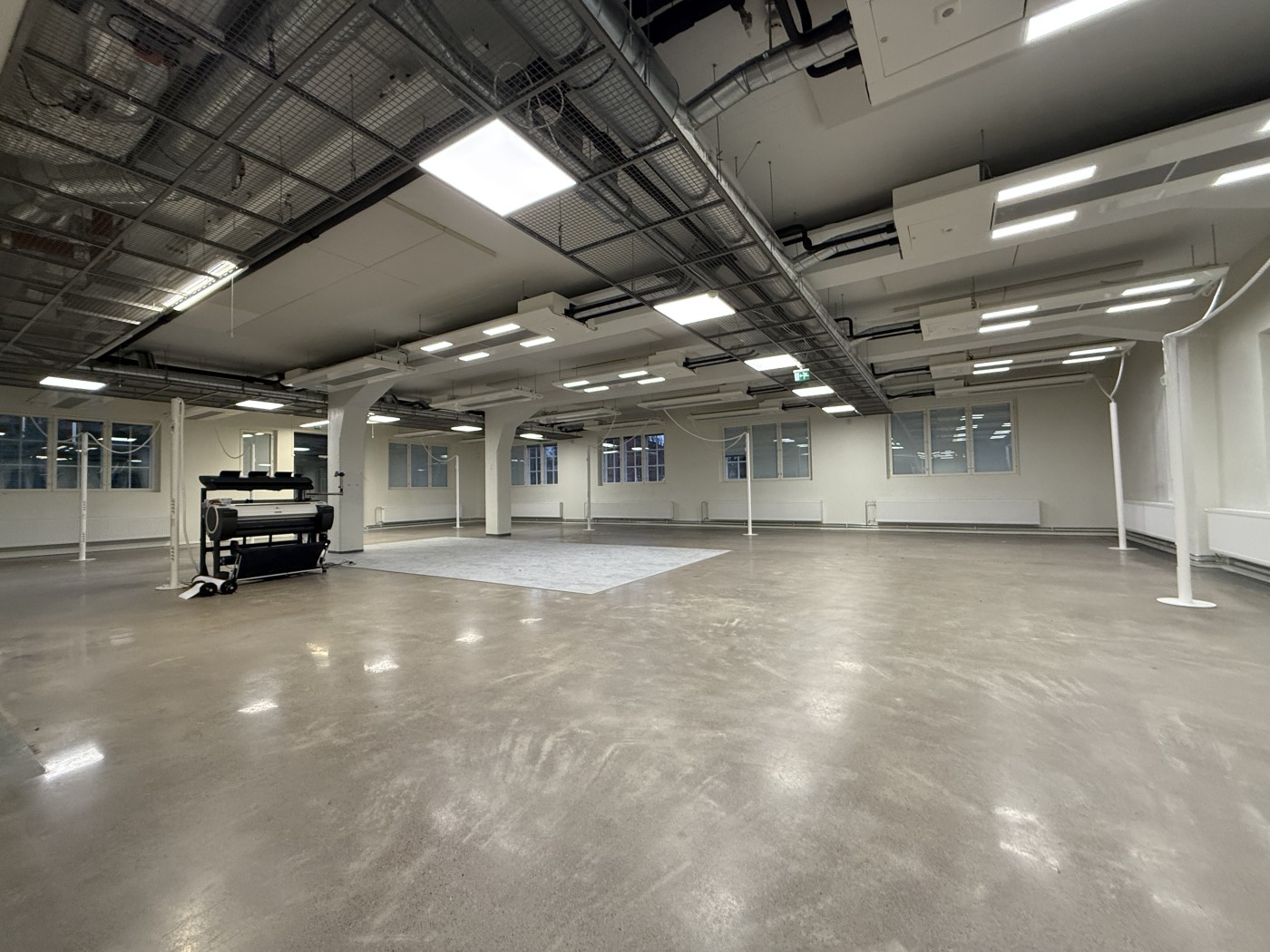 Tila jakaantuu pääosin avotiloihin, joiden lisäksi löytyy muutama työhuone ja neuvotteluhuone.