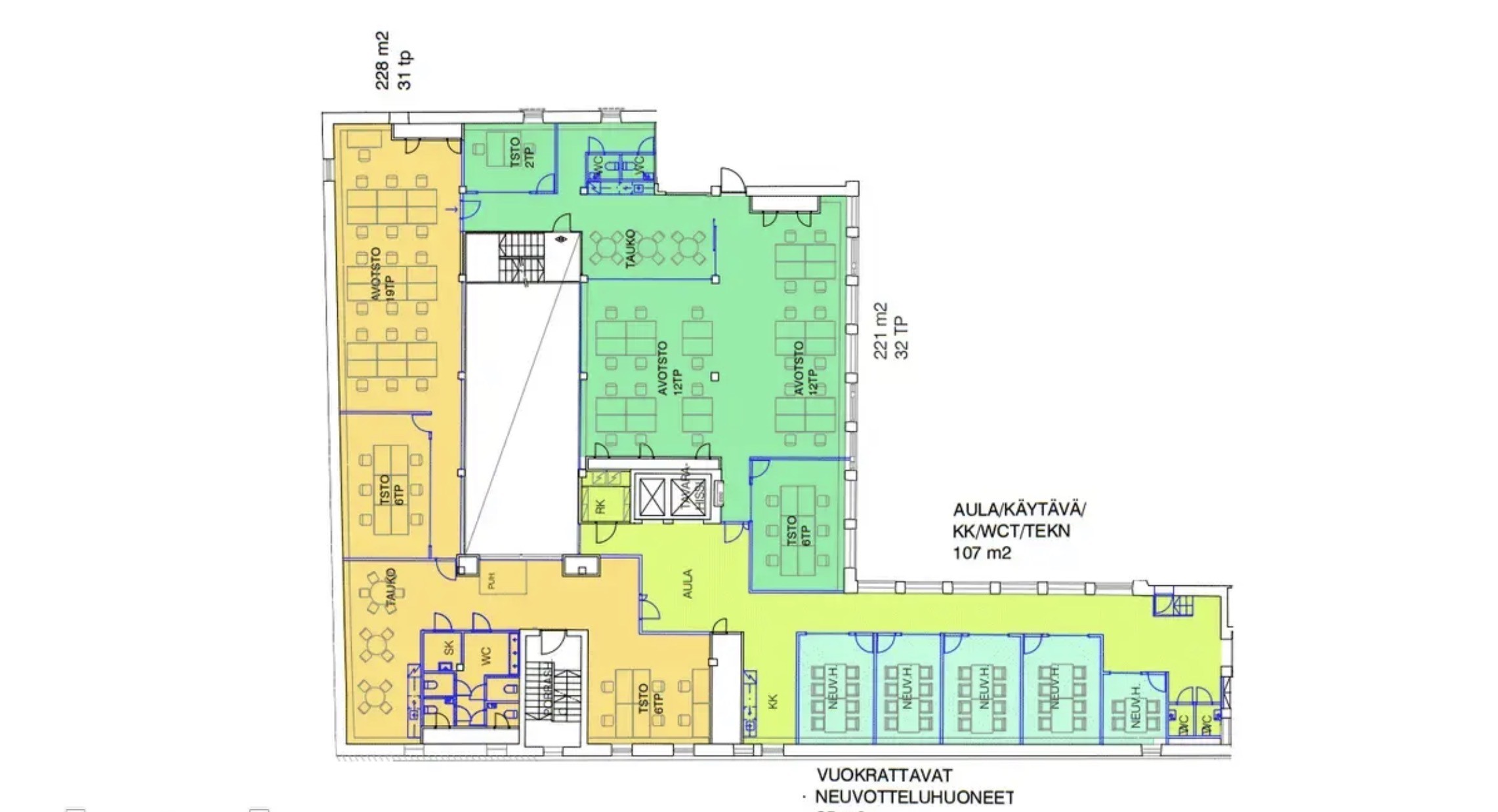 Vuokrataan moderni kolmannen kerroksen 221 m2 toimitila, joka remontoidaan tulevan vuokralaisen tarpeiden mukaan. Tässä avarassa tilassa avotilaa, neuvottelutiloja sekä atrium-piha. Tilassa lisäksi oma keittiö ja wc-tilat. Kiinteistöllä loistava sijainti lähellä keskustan palveluita. Yliopiston metroasema aivan vieressä.