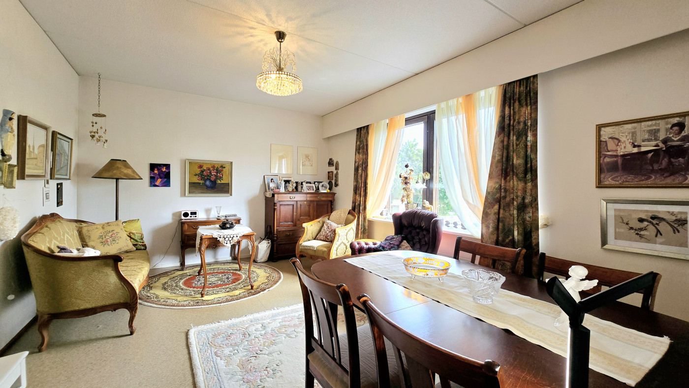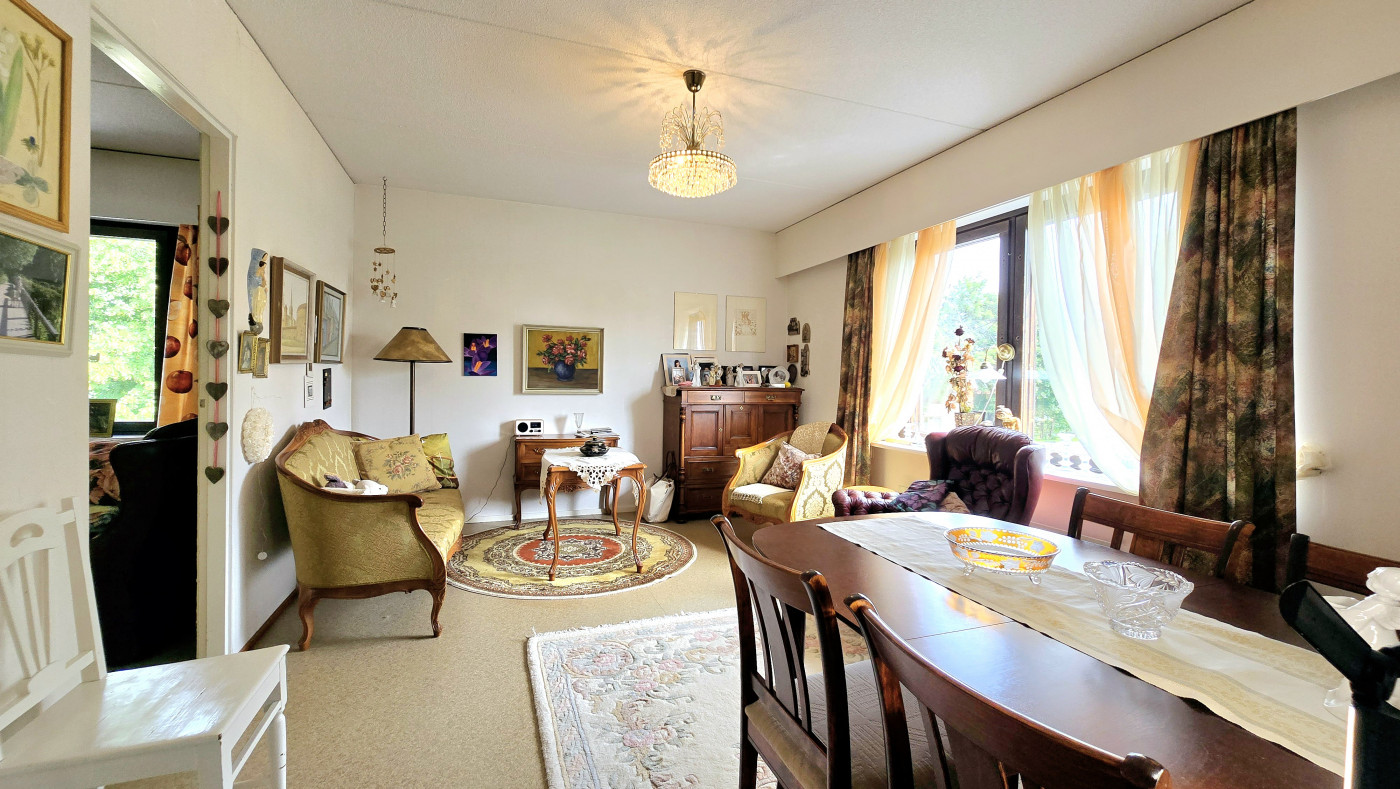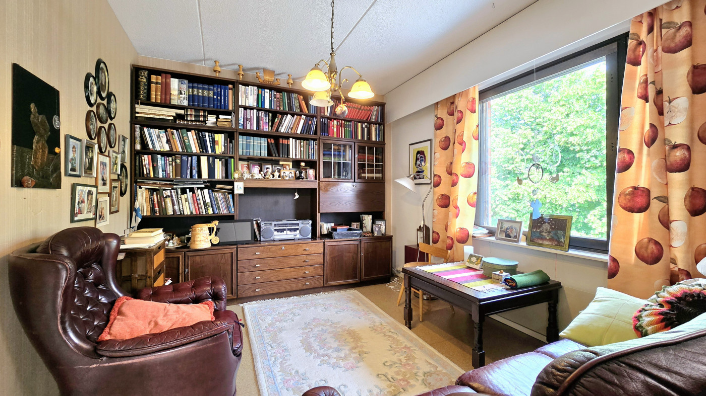 | Keittiö | Jää/pakastinyhdistelmä, sähköliesi, liesituuletin ja vaaleat siistit keittiökaapistot sekä tilaa myös keittiöpöydälle. Huoneiston lattioissa muovimattopinnat ja seinäpinnat maalatut tai tapetoidut. |