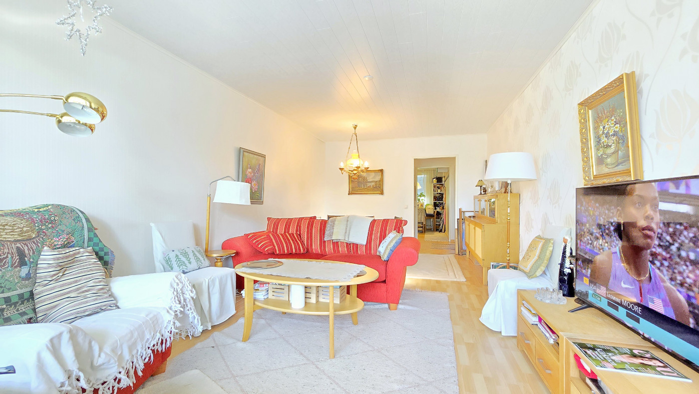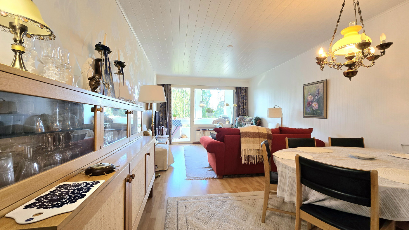 | Olohuone | Olohuoneessa on näyttävää tehostetapettikuviota ja olohuoneesta on käynti lasitetulle parvekkeelle, jossa myös paneeliverhot ja myös kaksinapainen sähkötöpselipaikka. |