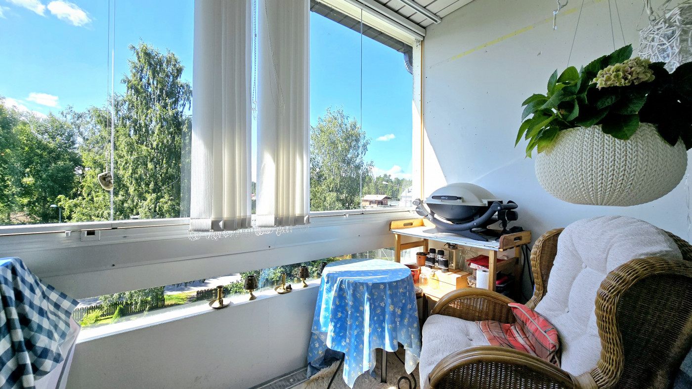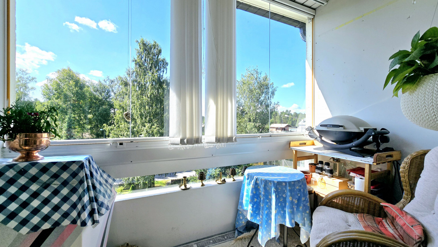 | Tehdyt korjaukset | Kylpyhuonetilat on remontoitu näyttäväksi vuonna 2014 laatoituksin, kohdevalaistuksin, lattialämmityksin, vedeneristyksin ja remontissa käyttövesiputket on asennettu myös pintaan. Keittiö on uusittu 2000-luvun alkupuolella ja keittiön alakaapistoa, vetolaatikostoja ja laminaattilattia uusittu vuonna 2014. Tämän näyttävän päätyhuoneiston muut lattia- ja seinäpinnat on uusittu kauniiksi vuonna 2007. Lasitetun parvekkeen lattia korotettu koolauksin ja pinnoitettu terassilaudoin. |