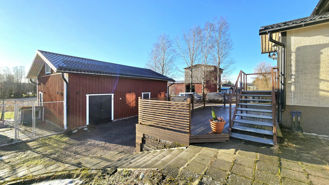 | Muut tilat | Vuonna 2024 uudistetun noin 70m² autotalli/verstashallirakennuksen 3,10 metriä ja leveys 3 metriä, seinissä on ek-kyprocit, eristysvillaa on 125 mm ja yläpohjassa noin 300 mm ontelopuhallettua villaa sekä voimavirtapistokkeita on useampia ja sähköpistokepaikkoja runsaasti. Rakennuksessa on näyttävät uusitut ulkovalaistukset. |