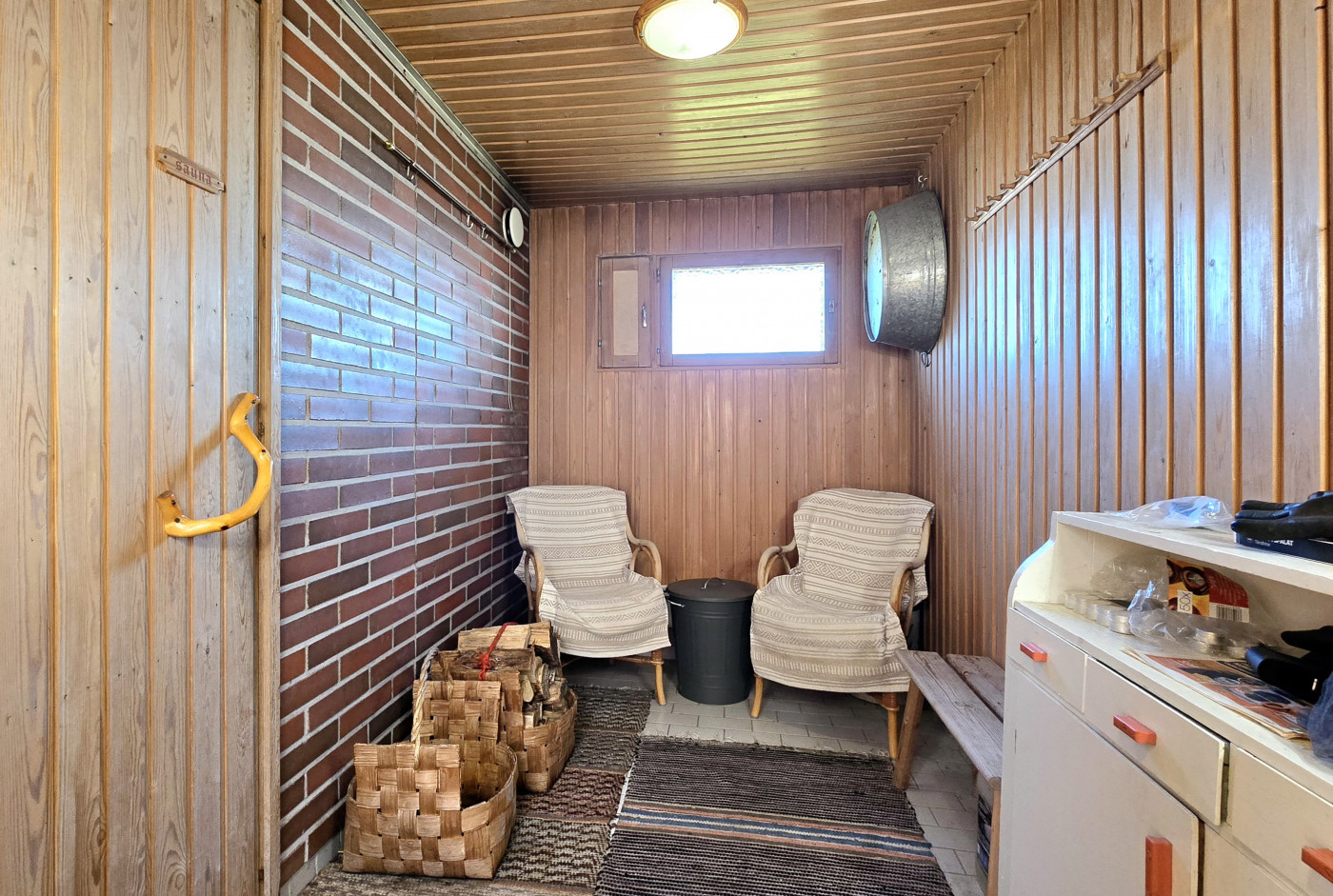 | Tehdyt korjaukset | Talon etupihalle tehty lisää parkkipaikkatilaa uusituin sorastuksin. Autotalli/verstasrakennus uudistettu eristyksin, ek-gyprokein, sähköisin nosto-ovin, sisäsähkötöin sekä ulkovalaistuksin. Kiinteistön sähköliittymä muutettu maakaapeleiksi Carunan puolesta. Saunarakennuksen lisäsaneeraus tehty viime vuosina mm. sisä-wc:een lämminvesivaraajin, kiintein sähköpatterein, saunan suihku uusittu ja puulämmitteinen kiuas uusittu v.2023. Tehty aurinkoterassi v.2020. Viime vuosien aikana uusittu vesikaivojen takaiskuventtiilit ja vesiautomaatti modernisoitu. Huoneiden patteritermostaatteja vaihdettu sekä pieni makuuhuone pintasaneerattu v.2022. Asennettu ilmalämpöpumppu myös viilennyksin v.2021. Keittiöremontti, talon vesikate ja sadevesijärjestelmä uusittu arviolta 2000 luvulla. |