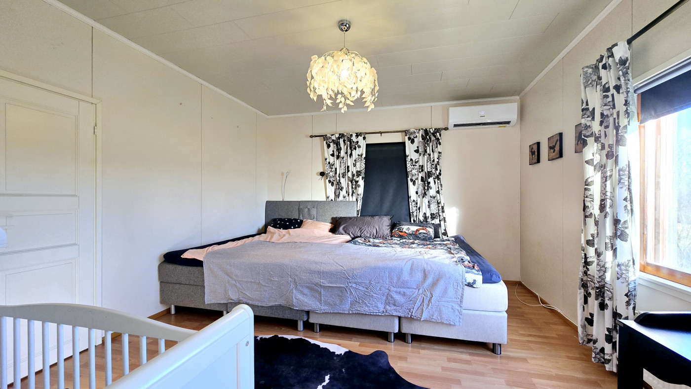 | Makuuhuoneet | Talon kahdesta makuuhuoneesta toinen on myös erittäin tilava noin 30 neliön kokoinen ja tässä isossa makuuhuoneessa on lisäksi myös ilmalämpöpumppu. Pienempi makuuhuone on viime vuosien aikana pintaremontoitu kauniiksi. |